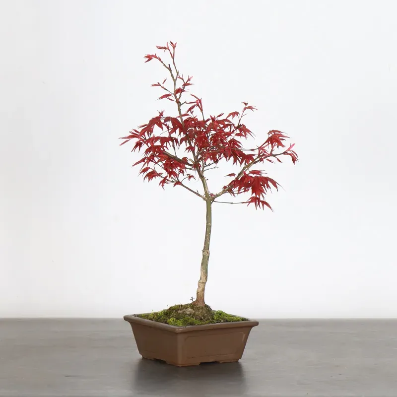 L’Erable rouge du Japon "Deshojo" en bonsaï séduit par son évolution spectaculaire au fil des saisons. Son feuillage démarre rouge profond au printemps, devient progressivement vert en été, puis se pare de superbes teintes rouge orangé à l’automne, offrant un magnifique spectacle à contempler tout au long de l’année.
