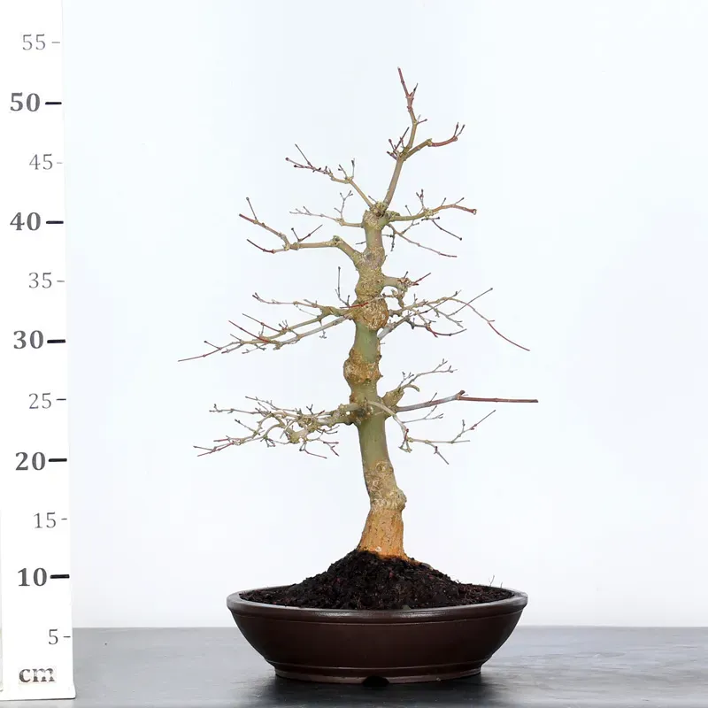 L’Erable rouge du Japon "Deshojo" en bonsaï séduit par son évolution spectaculaire au fil des saisons. Son feuillage démarre rouge profond au printemps, devient progressivement vert en été, puis se pare de superbes teintes rouge orangé à l’automne, offrant un magnifique spectacle à contempler tout au long de l’année.