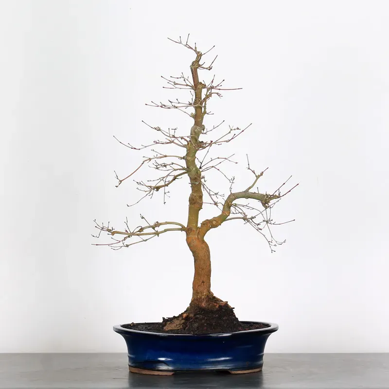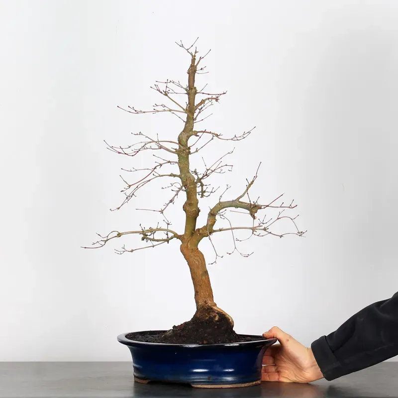 L’Erable rouge du Japon "Deshojo" en bonsaï séduit par son évolution spectaculaire au fil des saisons. Son feuillage démarre rouge profond au printemps, devient progressivement vert en été, puis se pare de superbes teintes rouge orangé à l’automne, offrant un magnifique spectacle à contempler tout au long de l’année.