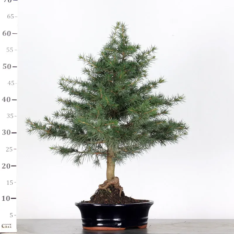 Le bonsaï cèdre du Liban "Cedrus libani", est un arbre mythique à croissance lente, au port étalé et aux branches horizontales. Ses aiguilles persistantes vert foncé sont regroupées en touffes denses.